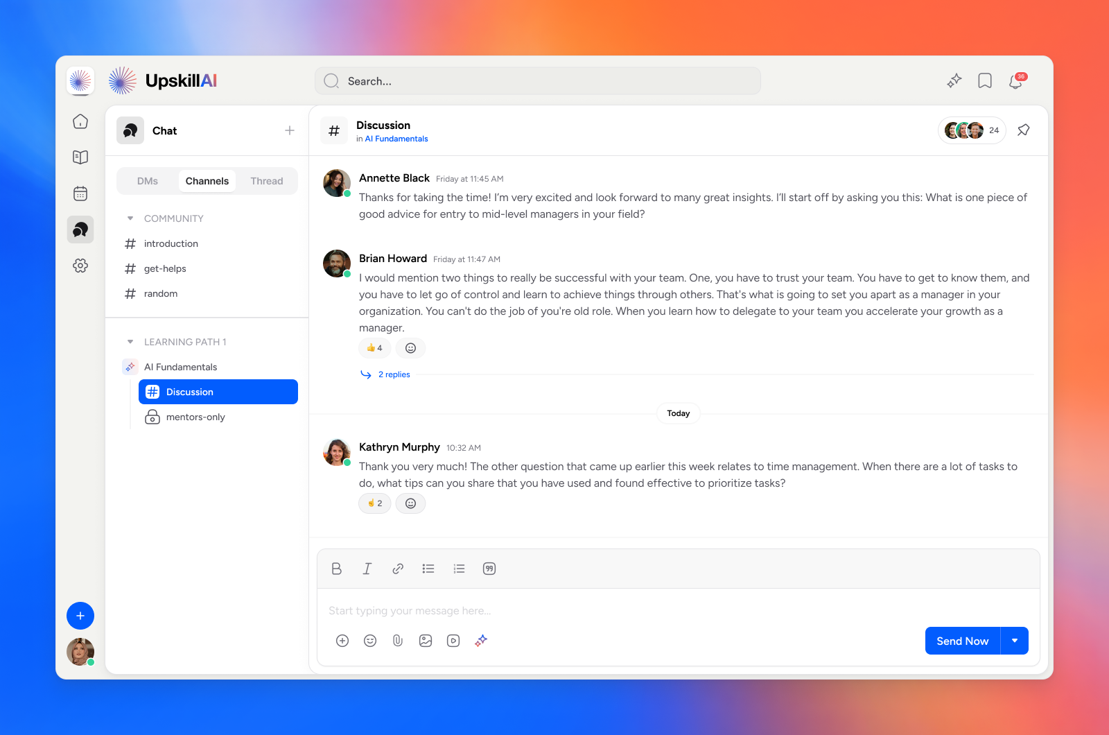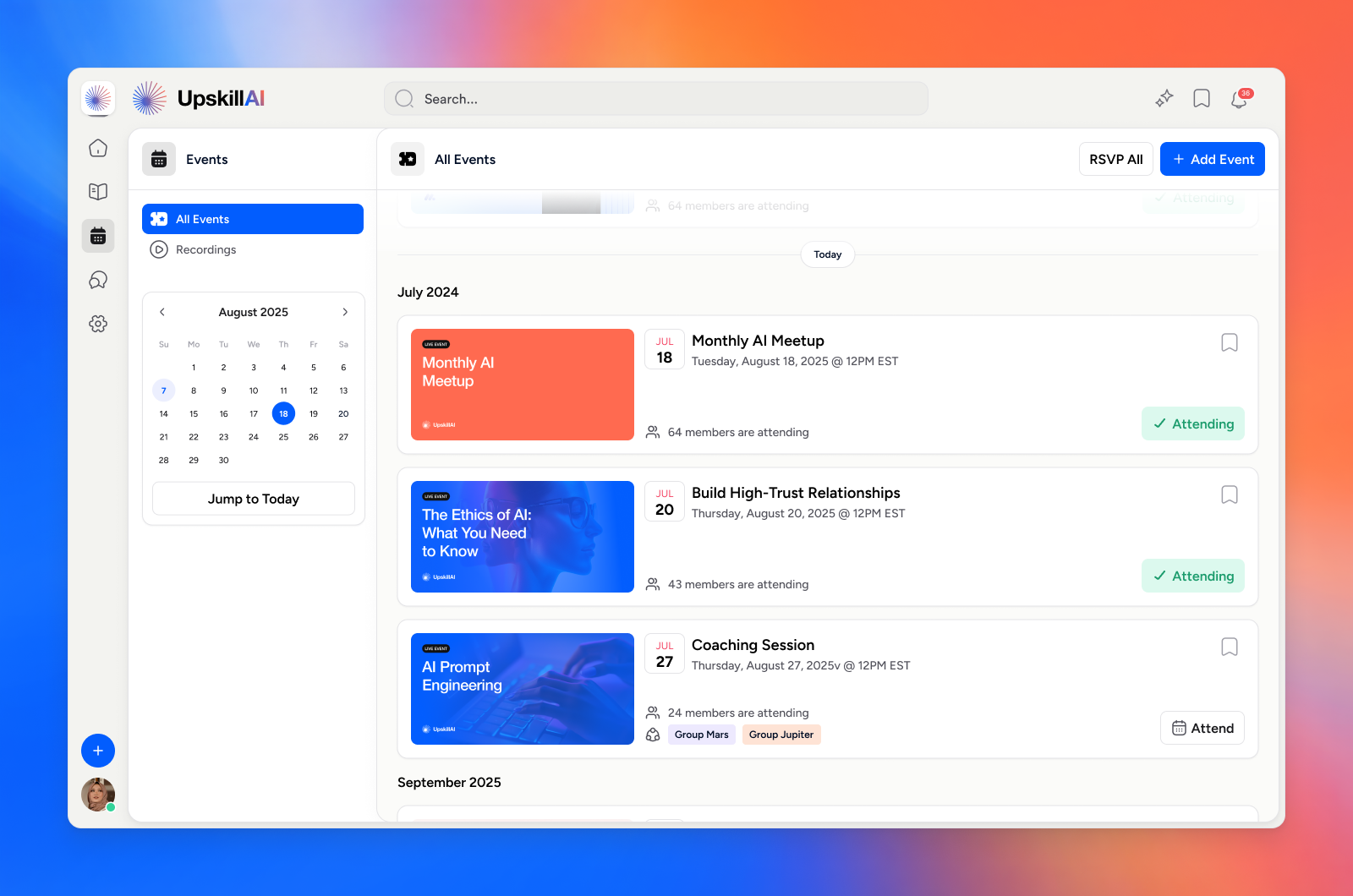 Create purpose-built academies that bring together the power of AI, learning and community into one fully branded experience.