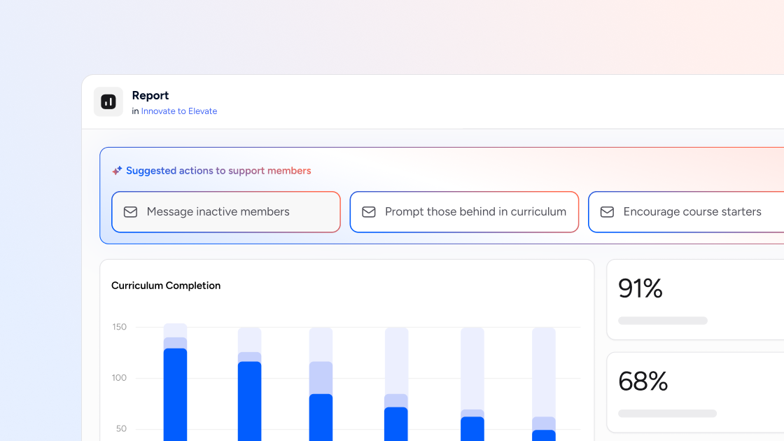 Surface the right insights at the right time. Flag at-risk learners and identify members who have yet to start. Not just data: recommended actions you can take today.