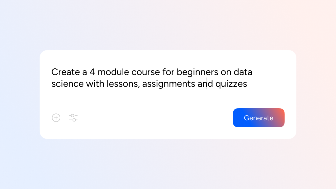 Describe your audience, upload your materials, and build a complete learning program: structured modules, lessons, and assessments to save time on instructional design.