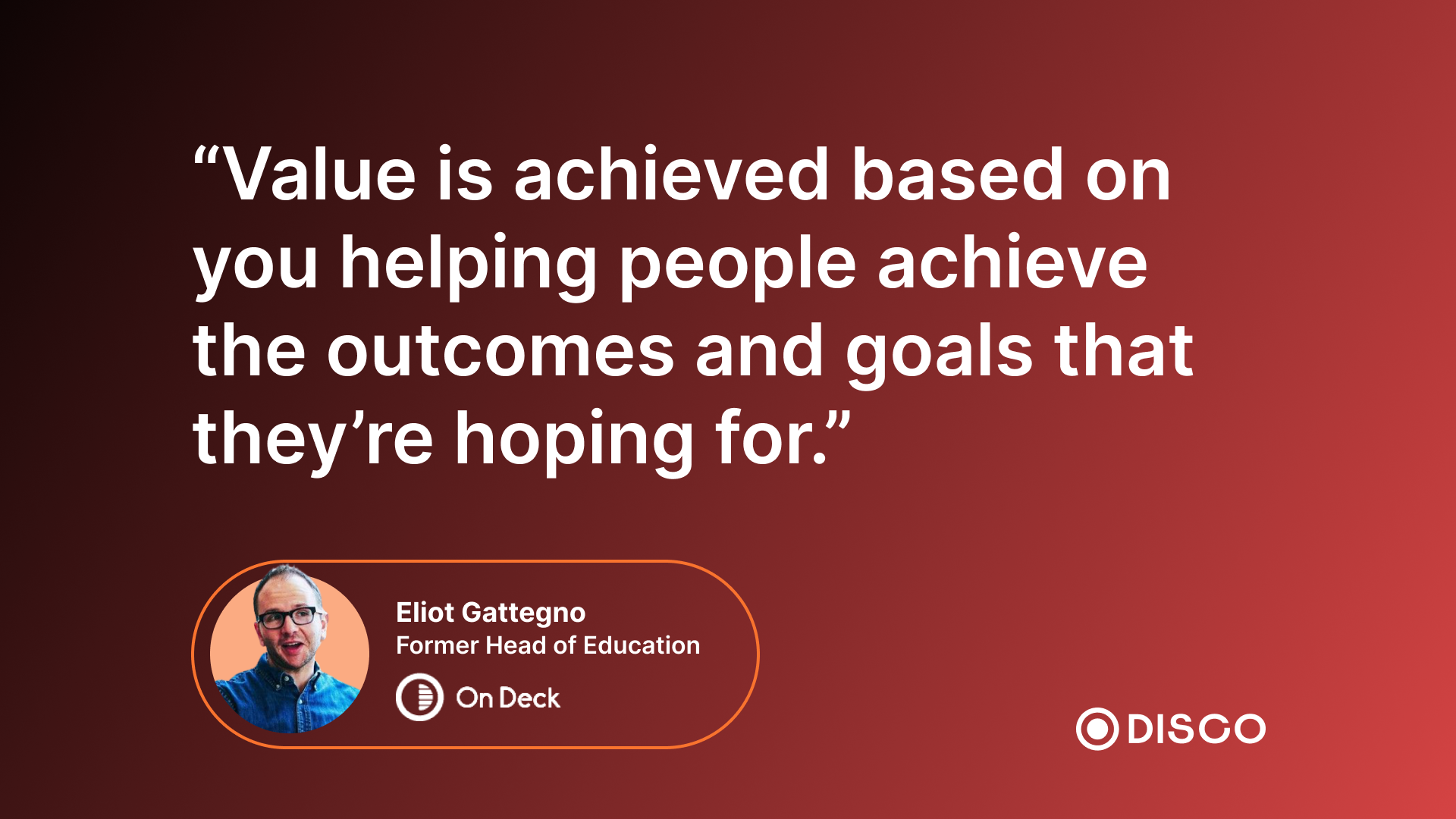 As Eliot Gattegno, On Deckâs former Head of Education, says âValue is achieved based on you helping people achieve the outcomes and goals that theyâre hoping for.â