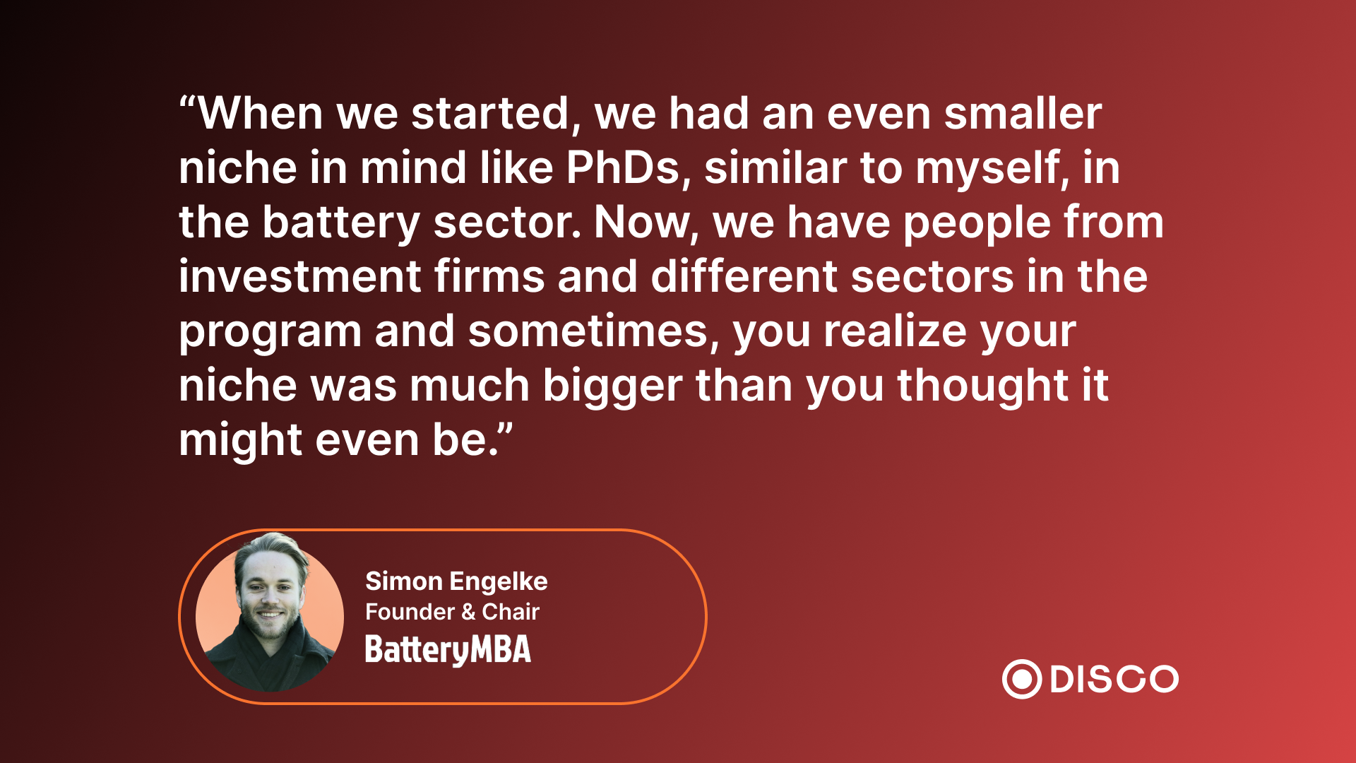 â"When we started, we had an even smaller niche in mind like PhDs, similar to myself, in the battery sector. Then we were amazed at how this niche grew. Now, we have people from investment firms and different sectors in the program and sometimes, you realize your niche was quite much bigger than you thought it might even be.â
