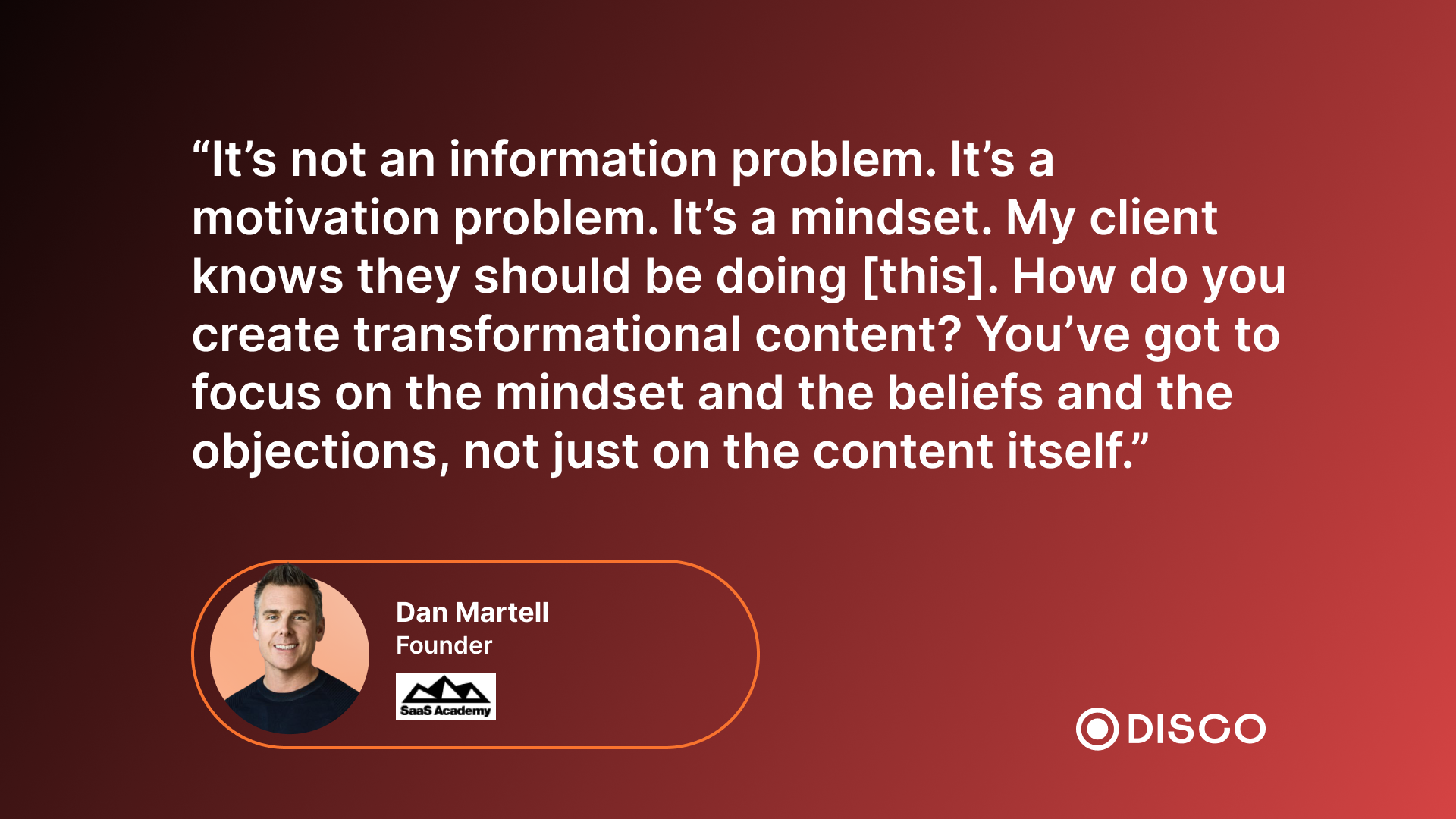 âItâs not an information problem. Itâs a motivation problem. Itâs a mindset. My client knows they should be doing [this]. How do you create transformational content? Youâve got to focus on the mindset and the beliefs and the objections, not just on the content itself.â