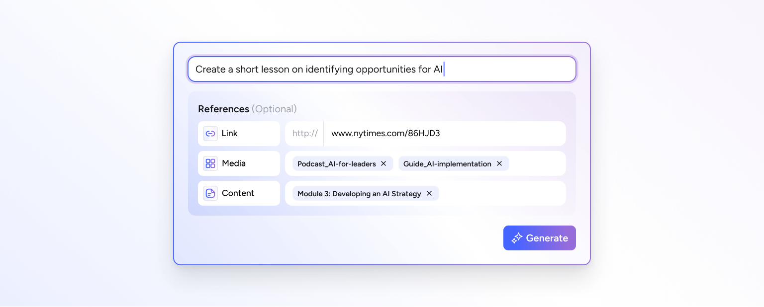AI aids in producing these elements, making courses more dynamic and appealing. For instance, AI can suggest multimedia elements like audio and images, streamlining the content creation process and making it easier to develop comprehensive courses.